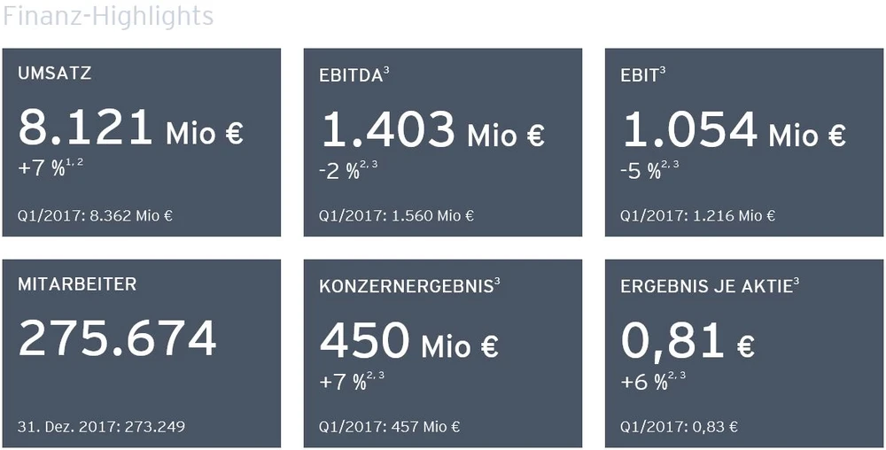 Der im DAX notierte Medizinkonzern Fresenius kann auf einen erfolgreichen Jahresstart zurückblicken und liegt auf Kurs zu den Jahreszielen. Sämtliche Regionen und Sparten konnten einen Zuwachs verzeichnen. Einziger Wermutstropfen: der starke Euro, der die Zuwächse aufgezehrt hat. So sank der Umsatz im ersten Quartal um ein Prozent auf 8,12 Milliarden Euro. Bereinigt um die Folgen des starken Euro wäre der Erlös aber um sieben Prozent gestiegen. Unter dem Strich stand ein Gewinn von 450 Millionen Euro und damit etwas weniger als im ersten Quartal 2017, das aber durch einen positiven Sondereffekt beeinflusst war. Währungsbereinigt lag der Überschuss auch hier um sieben Prozent über dem Vorjahreswert. Die Zahlen lagen damit im Rahmen der Erwartungen der Analysten.