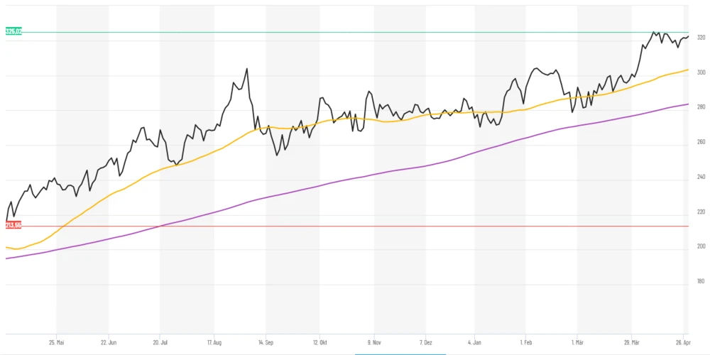 Alphabet ist seit Anfang Januar mit einem Plus von 35 Prozent der Top-Performer im Index. Das Unternehmen meldete gerade ein Rekordquartal, die Erlöse stiegen um 34 Prozent auf knapp über 55 Milliarden Dollar. Der Gewinn je Aktie von 26,29 Dollar lag mehr als zehn Dollar über den Konsens-Schätzungen der Analysten. Einziger Wermutstropfen bleibt das Cloud-Geschäft. Bei vier Milliarden Umsatz wurde da knapp eine Milliarde Verlust eingefahren. Ein Jahr zuvor wurden 2,8 Milliarden umgesetzt bei einem Verlust von 1,7 Milliarden Dollar.