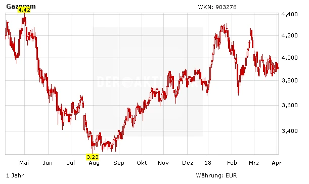 Es bleibt dabei: Mutige, langfristig orientierte Anleger können bei der Aktie von Gazprom nach wie vor zugreifen. Der Stopp sollte bei 3,20 Euro belassen werden.