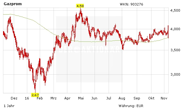 Die Aktie von Gazprom legt im heutigen Handel kräftig zu. Konkrete Unternehmensmeldungen des Erdgasriesen gab es nicht. Auch innerhalb der Branche gibt es heute keinerlei Grund für Euphorie. Allerdings präsentieren sich heute nahezu alle russischen Aktien in guter Verfassung – wohl wegen Donald Trump.