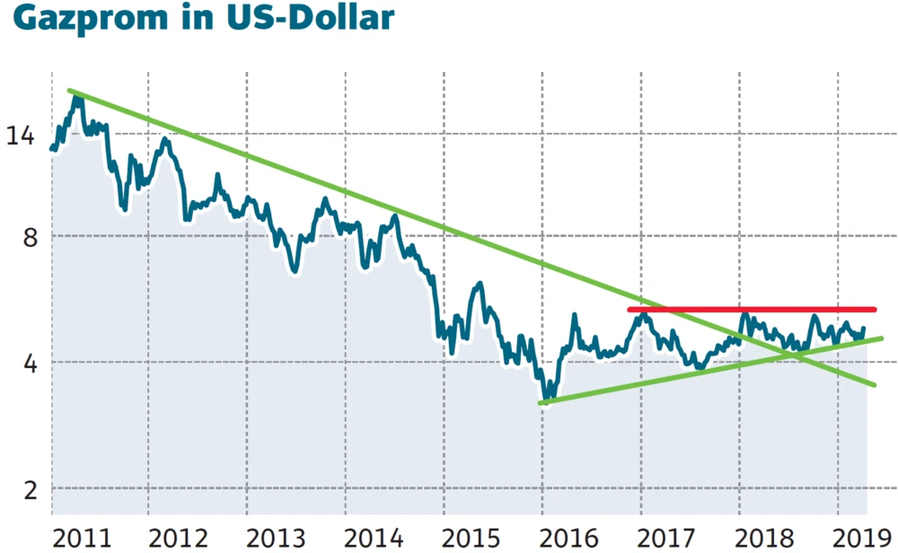 Wie sollten sich Anleger verhalten? Die Bewertungsrelationen sind verlockend. Allerdings wird es wohl bei russischen – und speziell bei halbstaatlichen – Konzernen wie Gazprom auch in Zukunft einen kräftigen Bewertungsabschlag im Vergleich zu Aktien von westlichen Energiefirmen geben. Daher bleiben die Gazprom-Papiere ausnahmslos für mutige Anleger mit einem langen Atem geeignet. Werden die in Aussicht gestellten technischen Kaufsignale generiert, sollte diese sich am Ende aber auch bezahlt machen. Der Stopp bleibt vorerst bei umgerechnet 3,50 Euro.