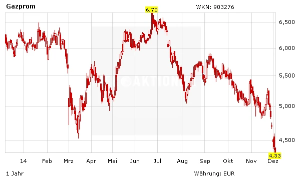Trotz der extrem günstigen Bewertung sollten Anleger bei Gazprom weiterhin an der Seitenlinie verharren. Es gibt derzeit einfach zu viele und vor allem zu große Risiken. Darüber hinaus ist das Chartbild äußerst trüb. Wer bereits investiert ist, beachtet den Stopp bei 4,10 Euro.