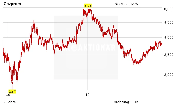 Die Perspektiven für Gazprom bleiben gut, die Bewertung der Aktie ist immer noch enorm niedrig und das Chartbild relativ aussichtsreich. Nichtsdestotrotz sind die Gazprom-Aktien nach wie vor eher für mutige als für konservative Anleger geeignet. Der Stopp sollte bei 2,90 Euro belassen werden.