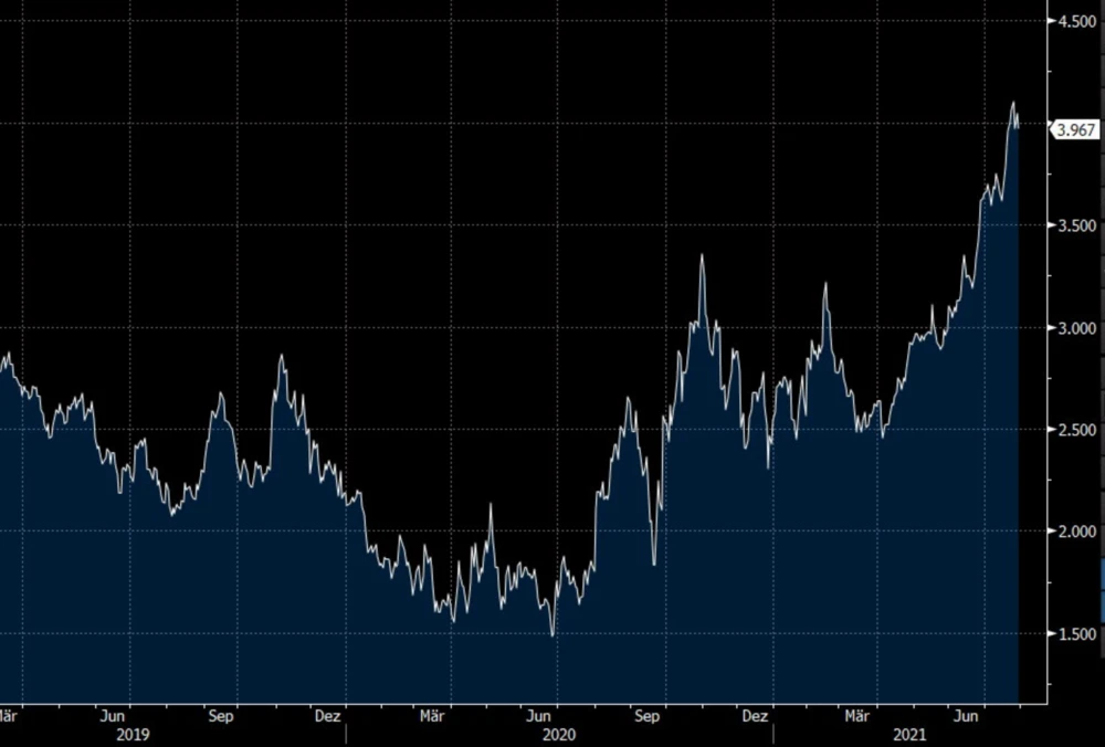 So haben sich die Gaspreise in den vergangenen Monaten stetig weiter verteuert. Im Vorjahr lagen sie bedingt durch milde Temperaturen und auch durch eine corona-bedingt schwächere Nachfrage beständig auf einem weitaus niedrigeren Niveau, was auch bei Gazprom mitverantwortlich für ein schwaches Konzernergebnis 2020 war. In diesem Jahr beschert das anhaltend hohe Niveau dem Konzern praktisch eine Lizenz zum Gelddrucken.