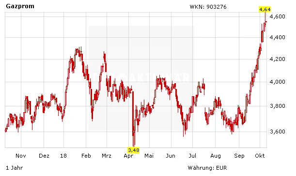 Demnach steigerte der weltgrößte Erdgasproduzent den Export nach Deutschland in den ersten neun Monaten des laufenden Jahres kräftig. Mit den bis Ende September gelieferten 42,7 Milliarden Kubikmetern verbuchte Gazprom in seinem wichtigsten Absatzmarkt einen Anstieg von 12,3 Prozent.
