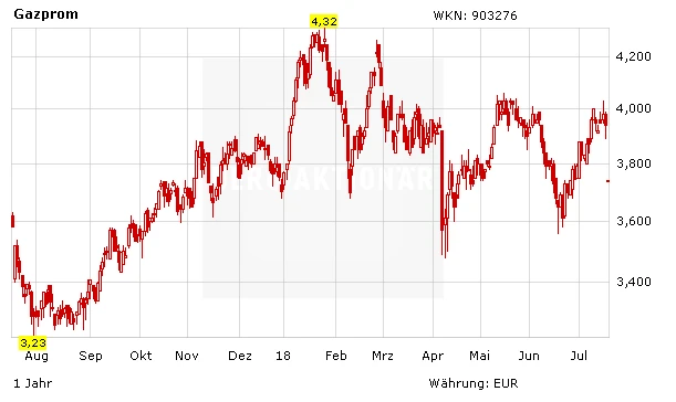 Die Aktie von Gazprom bleibt indes unverändert ein heißes Eisen und für konservative Anleger eher weniger geeignet. Mutige können hingegen bei den äußerst niedrig bewerteten Papieren zugreifen. Der Stopp sollte bei 3,20 Euro belassen werden.