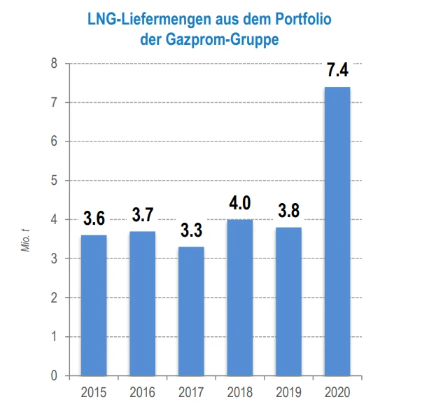 So forciert der weltgrößte Erdgasproduzent den Ausbau seines Geschäfts mit Flüssiggas (LNG). Bereits im vergangenen Jahr konnte Gazprom seine Liefermenge in diesem Bereich kräftig erhöhen: