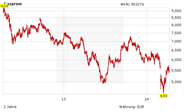 Die Aktie von Gazprom ist vor allem aufgrund des großen politischen Risikos nach wie vor nicht für konservative Anleger geeignet. Mutige, langfristig orientierte Anleger können allerdings weiter auf eine Erholung der aktuell enorm billigen Aktie des Weltmarktführers setzen. Der Stopp sollte bei 3,70 Euro platziert werden.