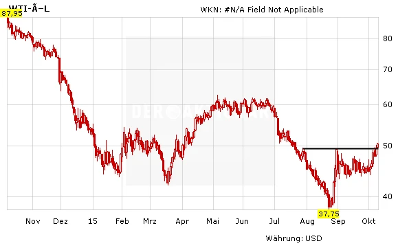 Die Aktien der Energieriesen Gazprom und Royal Dutch Shell konnten im Wochenverlauf deutlich zulegen. Zu verdanken ist das vor allem der Erholung des Ölpreises. So ist dem US-Öl WTI der Ausbruch über einen hartnäckigen Widerstandsbereich gelungen, sodass der Kurs erstmals seit dem 22. Juli wieder über der Marke von 50 Dollar je Barrel notiert.