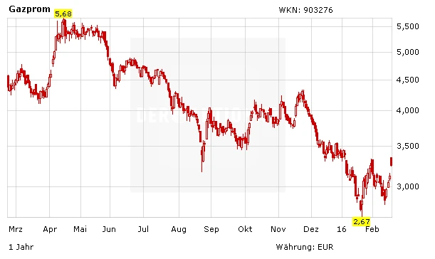 Die Aktie von Gazprom ist mit einem KGV von 3, einem KBV von 0,3 und einer Dividendenrendite von mehr als fünf Prozent ein absolutes Schnäppchen. Wegen des schwierigen Marktumfeldes für Energietitel sowie der politischen Risiken bleiben die Papiere ausnahmslos für mutige Anleger geeignet.