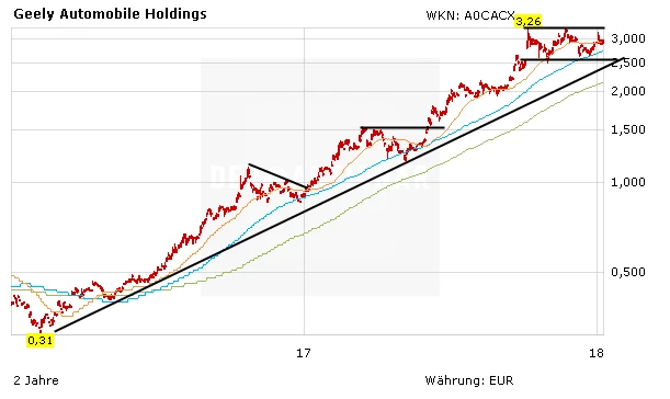 Auch DER AKTIONÄR bleibt für Geely optimistisch. Im Dezbember 2017 wurde die neue SUV-Marke Lynk & Co am Markt eingeführt. 6.012 Autos wurden in den letzten vier Wochen des Jahres verkauft, was über den Erwartungen des Managements lag.