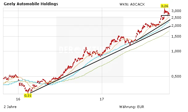 In China hat Geely die Eigenmarken Emgrad, Englon, Panda und Shanghai Maple Automobile zu bieten. Diese Sorgen für gute Geschäfte. China hat die Vereinigten Staaten längst - nicht zuletzt mit Hilfe staatlicher Subventionen – als größter Automarkt der Welt überholt. 2015 lag der Absatz bei 20,0 Millionen neu verkauften Autos, 2016 waren es 22,1 Millionen Einheiten, 2017 geht das CAR-Institut von über 24,0 Millionen neuen Autos aus, die im Reiche der Mitte verkauft werden. „Der verhältnismäßig junge Autobauer Geely profitiert von der enormen Nachfrage nach Fahrzeugen in China“, sagt Asienexperte Andreas Lipkow. Hinzu kommt: China will der Leitmarkt in Sachen Elektromobilität werden. Gut möglich, dass schon 2030 eine E-Quote von 100 Prozent erreicht wird. Das würde dann 40 Millionen neu verkaufte Elektroflitzer pro Jahr bedeuten. Auch hierfür rüstet sich Geely.