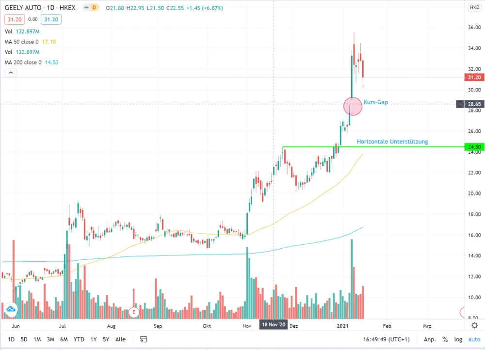 Zum Wochenausklang schloss die Geely-Aktie in Hongkong rund 4,9 Prozent tiefer bei 31,20 Hongkong-Dollar. Sollte der Verkaufsdruck in der neuen Handelswoche anhalten, könnte es zu einem Gap-Close im Bereich von 29,20 bis 27,80 Hongkong-Dollar kommen. Fällt der Kurs darunter, fungiert die horizontale Unterstützung bei 24,50 Hongkong-Dollar als zusätzliche Auffangmarke.