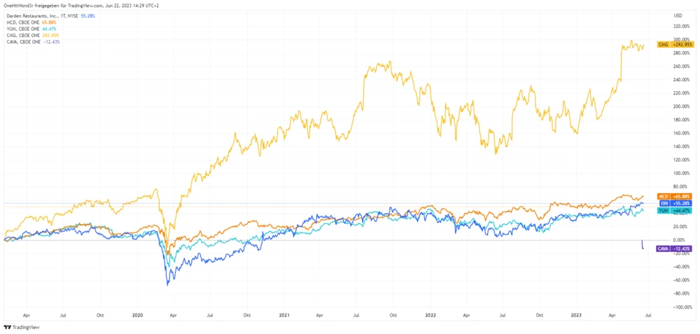 Zu meckern haben Investoren von Fast-Food-Ketten ohnehin wenig. Mit dem steilen Kurswachstum von Tech-Unternehmen können McDonalds und Konkurrenten (mit Ausnahme von Chipotle) zwar nicht mithalten. Den Gesamtmarkt allerdings hat man deutlich outperformen können, vor allem wenn man die Dividende in Rechnung stellt.
