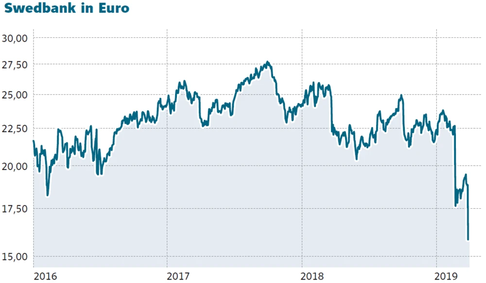 Die Swedbank hatte die Razzia am Mittwoch bestätigt, gleichzeitig aber erklärt, dass es derzeit keinen Verdacht gegen eine konkrete Person oder rechtliche Einheit, eine Straftat begangen zu haben. Dennoch ist die Aktie am Mittwoch um rund zwölf Prozent eingebrochen. Da sich die Talfahrt am Donnerstagmorgen zunächst fortsetzte, wurde die Aktie zeitweise vom Handel ausgesetzt.