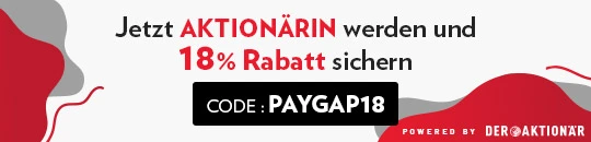 Aus diesem Grund gibt es ab dem Equal Pay Day bis einschließlich Sonntag, den 14. März 2021 einen lukrativen Rabatt in der Höhe des Einkommensunterschieds von 18 Prozent auf ausgewählte Abonnements von DER AKTIONÄR und einfach börse. Dazu einfach Produkt wählen und Rabattcode PAYGAP18 eingeben.* Seien Sie mit unseren Produkten bestens gerüstet, um an der Börse aktiv zu werden: