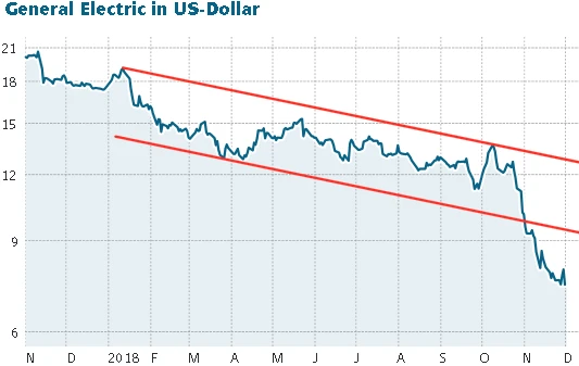 Der tiefe Fall der US-Industrieikone General Electric ist erschreckend. Nach wie vor wird jeder Erholungsversuch abverkauft. Nachdem die Aktie in Deutschland am Freitag zunächst deutlich im Plus gehandelt wurde, leuchten inzwischen wieder klar rote Vorzeichen auf. Ehemalige Mitarbeiter belasten den Konzern vor der US-Börsenaufsichtsbehörde SEC schwer.