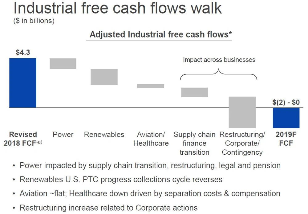 Für 2019 peilt General Electric ein bereinigtes Ergebnis zwischen 50 und 60 Cent je Aktie an. Experten hatten im Durchschnitt mit 70 Cent gerechnet. Zudem dürfte der freie operative Cash Flow wie bereits angekündigt negativ sein. Zwischen null und zwei Milliarden Euro soll das Minus betragen.