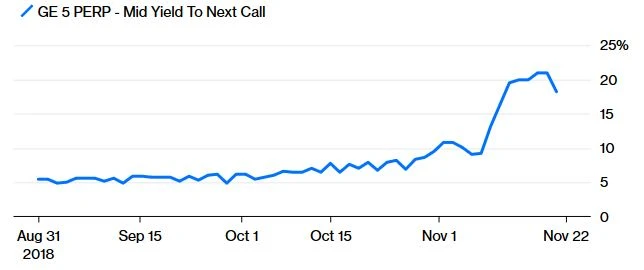 Der Industrieriese General Electric verliert zunehmend das Vertrauen der Kreditmärkte. Die Schulden werden nur langsam abgebaut, die Zahlen im dritten Quartal haben nicht überzeugt. Zudem wurde die Bewertung der GE-Anleihen im vergangenen Monat gekappt und ist nur noch drei Stufen von der Einordnung „junk“ – das bedeutet Ramschniveau – entfernt.