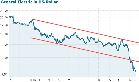Es war ein kurzes Strohfeuer. Mitte vergangener Woche sah es so aus, als ob die Aktie von General Electric nach der dramatischen Talfahrt der vergangenen Monate zu einer Gegenbewegung ansetzen könnte. Doch bereits am Freitag hat die Aktie ein neues Mehrjahrestief erreicht – nach wie vor bleibt das Risiko groß.