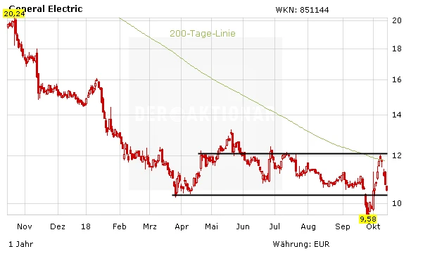Ursprünglich wollte GE am 25. Oktober Einblick in die Bücher gewähren – jetzt werden die Zahlen erst am 30. Oktober veröffentlicht. Die Begründung: Der neue Konzernchef Larry Culp soll mehr Zeit zur Einarbeitung bekommen. An der Börse kommt das naturgemäß nicht gut an. Es besteht die Gefahr, dass mit der Verschiebung auch erneute Hiobsbotschaften verkündet werden. So sind beispielsweise weitere Abschreibungen möglich.