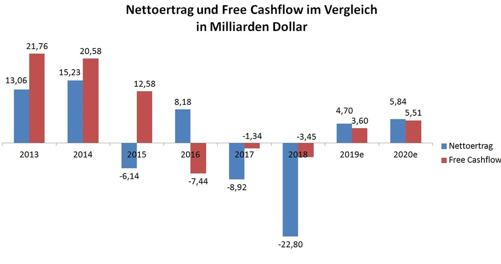 GE Power wird laut Culp in diesem Jahr mehr Geld verbrennen als 2018 – da lag der negative Cashflow noch bei 2,7 Milliarden Dollar. Das Problem: Bei GE steht der Cashflow ohnehin unter genauer Beobachtung, da Gewinn und Cashflow bei der Industrieikone zuletzt häufig deutlich auseinanderklafften (siehe Grafik).