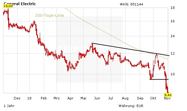 Die Probleme bei GE bleiben groß. Ob Culp zeitnah die Wende zum Guten gelingt, ist deshalb weiter fraglich. Aufgrund der großen Risiken ist die Aktie nach wie vor kein Kauf. Die Short-Empfehlung des AKTIONÄR läuft dagegen weiter glänzend. Der Turbo-Short mit der WKN MF4CNU aus Ausgabe 42/18 liegt bereits 55 Prozent im Plus. Anleger sollten die Gewinne absichern und den mehrfach nachgezogenen Stopp bei 8,00 Euro beachten.