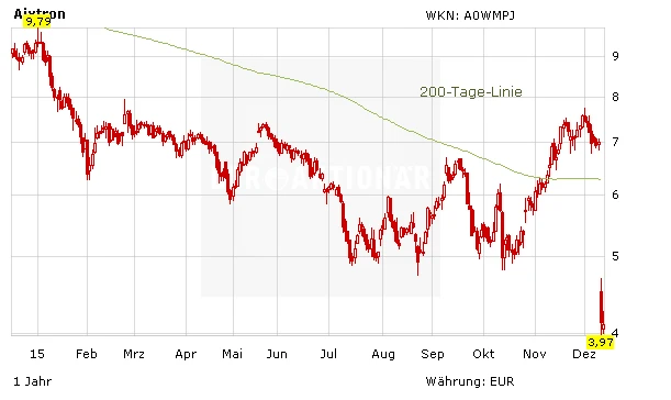 Nach ihrem massiven Kurseinbruch von über 40 Prozent haben sich Aixtron-Aktien am Freitag etwas erholt. Die Papiere des Spezialmaschinenbauers konnten sich damit etwas von der Marke von 4 Euro absetzen. Die Analystenreaktionen auf den Verlust eines Großauftrags des chinesischen LED-Herstellers San'an bleiben derweil negativ.