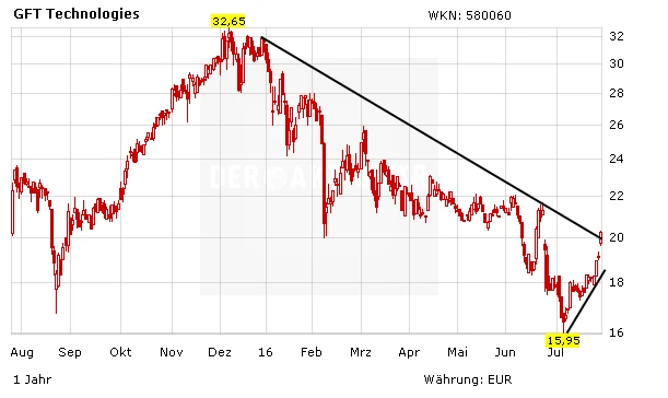 Die GFT-Aktie ist im laufenden Jahr stark abgestraft worden. Ob die vorhandenen Risiken sich derart gravierend auswirken, bleibt fraglich. Inzwischen ist die Bewertung aber wieder attraktiv und der Trend zeigt nach oben. Anleger können darauf spekulieren, dass sich die Erholung fortsetzt.
