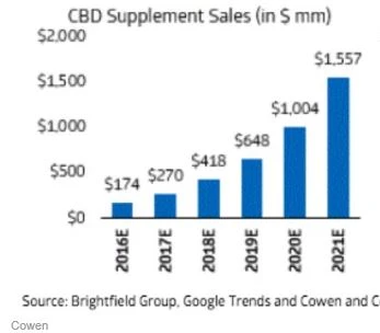Experten sehen gigantisches Potenzial in den USA. Das Marktforschungsunternehmen Brightfield schätzt, dass mit US-CBD derzeit ein Umsatz von 418 Millionen Dollar erzielt wird. Bis 2021 könnte er sich auf 1,6 Milliarden Dollar vervielfachen.