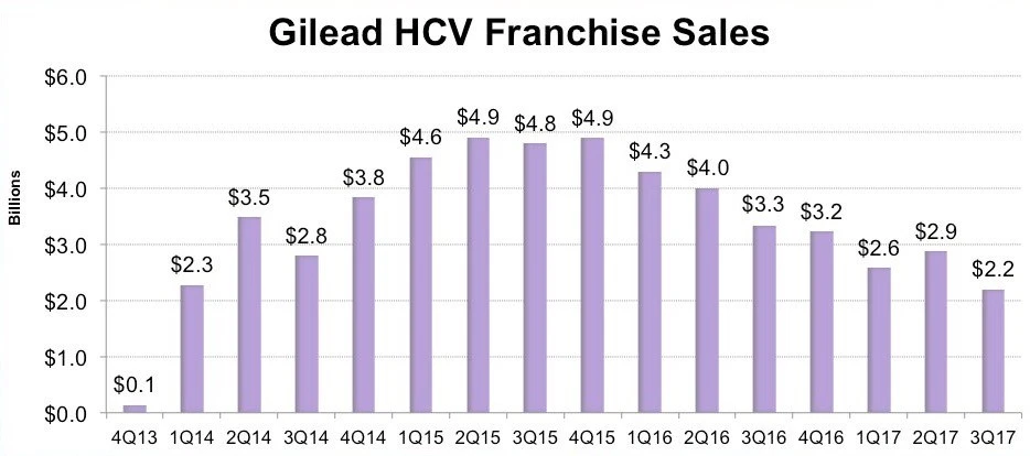 Unterm Strich erzielte Gilead ein Ergebnis von 2,27 Dollar je Aktie, Experten haben lediglich 2,13 Dollar pro Papier erwartet. Beim Umsatz verzeichnete die Biotech-Gesellschaft einen Rückgang um 13,3 Prozent auf 6,5 Milliarden Dollar, 110 Millionen Dollar mehr als die Schätzung. Anleger sorgen sich aber weiter um das Geschäft mit Hepatitis C.