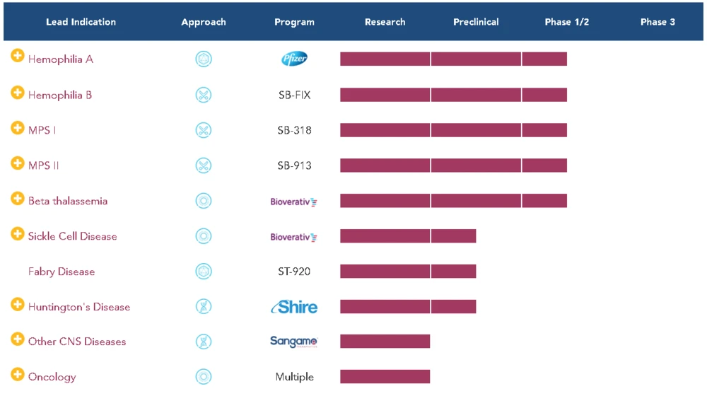 Der Experte beziffert die Erfolgswahrscheinlichekit auf 17 bis 22 Prozent. Wird das Hämophilie-Projekt sowie MPS I und II erfolgreich weiter entwickelt, traut Qian Wang der Sangamo-Aktie Kurse von 42 Dollar zu.