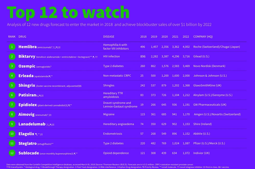 Große Pharma- und Biotech-Konzerne bringen in diesem Jahr viele neue Medikamente auf den Markt, die bereits in wenigen Jahren die Umsatzmarke von einer Milliarde Dollar knacken. Im Sektor spricht man dann von einem sogenannten Blockbuster. Clarivate Analytics hat in einem aktuellen Report die besten zwölf Präparate aufgelistet, die 2018 gelauncht werden und spätestens 2022 zum Blockbuster reifen sollen. DER AKTIONÄR nimmt die dazugehörigen Pharma- und Biotech-Konzerne in einer dreiteiligen Serie genauer für Sie unter die Lupe.