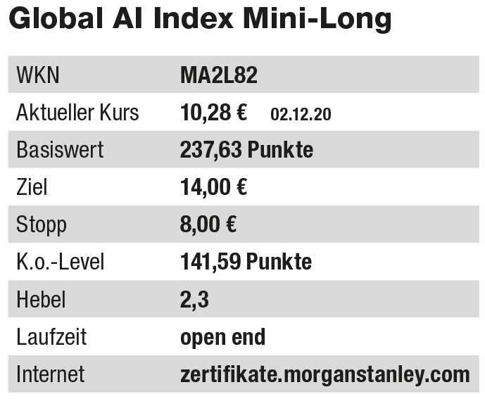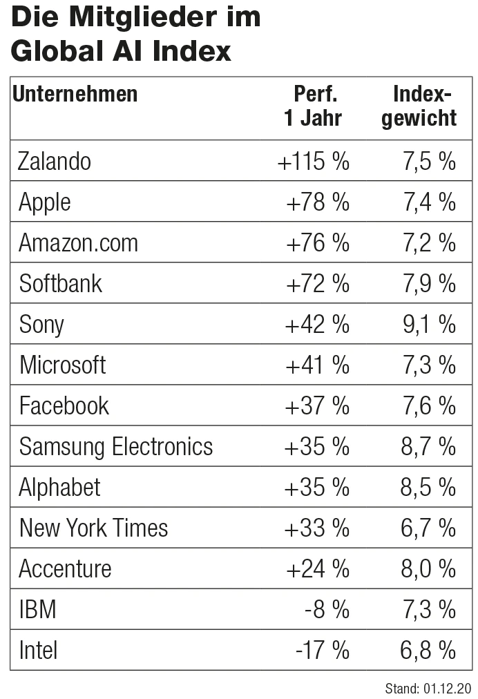 Die Zalando-Aktie ist dank des Homeshoppings während des Lockdowns der beste Performer im Global AI Index. Zwar bekam der Wert aufgrund der Hoffnung auf einen baldigen Corona-Impfstoff und der damit verbundenen Wiedereröffnung des Einzelhandels einen Dämpfer – doch die Erfolgsstory dürfte auch nach der Pandemie weitergehen.