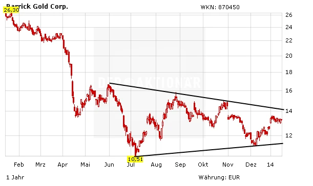 Deutet sich hier eine langsame und von den meisten nicht beachtete Erholung der Minenaktien an? Ein Blick zurück: Im Zuge des Goldpreisverfalls mussten die Minenaktien im vergangenen Jahr deutlich Federn lassen müssen. Die Aktie des Marktführers Barrick Gold hat sich im vergangenen Jahr fast halbiert. Kein Wunder, schmolzen doch die Margen mit dem fallenden Goldpreis zusammen.
