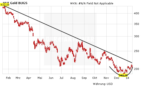 Interessant dabei: Die Goldminen-Aktien neigten bereits zur Schwäche, als der Goldpreis noch im Aufwärtstrend gewesen ist. Schon in der letzten Phase des Aufschwungs zogen die Goldminen-Aktien nicht mehr mit. Umgekehrt bedeutet das: Die Goldminen könnten jetzt bei einem noch schwachen Goldpreis die Trendwende einläuten. Auch von Seiten der UBS sieht man das wohl ähnlich. Zwar rechnet die Schweizer Großbank für das laufende Jahr noch mit einem schwachen Goldpreis. Doch bei Goldminenaktien sehen sie bereits Kaufchancen.
