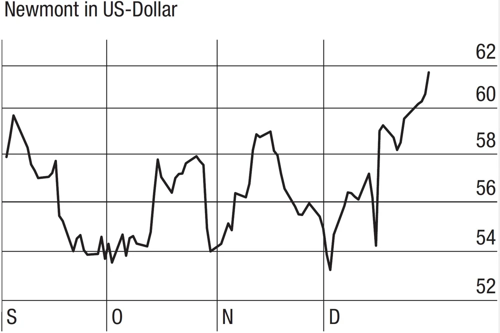 2. Newmont hat die höchste Marktkapitalisierung (42,6 Milliarden US-Dollar, Barrick kommt als Nummer zwei der Branche auf 33,5 Milliarden) und ist hochliquide. Genau der Titel also, den Institutionelle wählen würden, wenn sie in den Sektor zurückkehren.