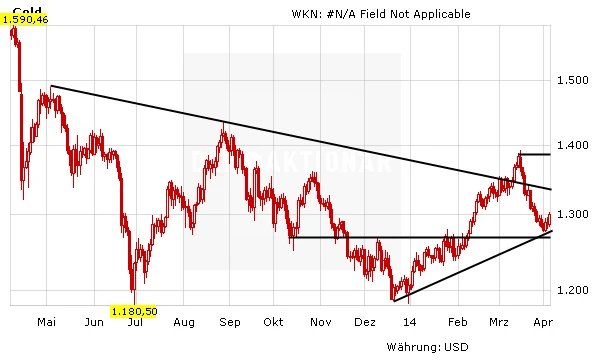 Noch ist es sicherlich zu früh, von einer Rückkehr der Bullen zu sprechen. Doch gelingt es, die psychologische wichtige Marke von 1.300 Dollar nachhaltig nach oben zu durchbrechen, spricht dies eindeutig für das oben beschrieben Szenario. Dann wäre ein Angriff auf das Jahreshoch im Bereich des Möglichen.