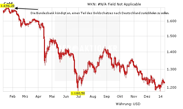 Man soll ja nicht alte Wunden wieder aufreißen. Aber 2013 war, um es kurz zu machen, für Goldanleger ein Jahr zum vergessen. Der Goldpreis verlor knapp 30 Prozent an Wert. Und selbst die großen Goldoptimisten warfen zuletzt das Handtuch. Gründ wurden viele genannt. Doch könnte es sein, dass die Bundesbank der Auslöser für den Goldpreisrutsch gewesen ist?