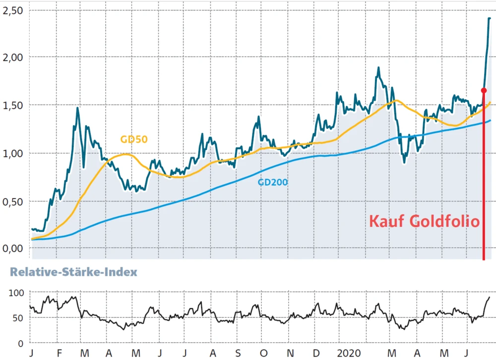 Ich denke, es steht eine ähnliche Zeit ins Haus. Bei Goldfolio haben wir deshalb ein Explorationsdepot aufgelegt. Hochspekulativ – doch wenn sich die Prognose erfüllt, dass der Explorationssektor vor einem Comeback steht, dann könnte dies die größte Chance für Anleger in diesem Jahrzehnt werden. Bislang haben wir zwei Werte aufgenommen. Beide Unternehmen explorieren Gebiete in einem sicheren politischen Umfeld. Das eine in den USA, das andere in Kanada. Nachdem sich unsere erste Depotaufnahme zunächst etwas zierte, ist sie in den vergangenen Tagen nach oben ausgebrochen und hat ein riesiges Kaufsignal generiert. Das Unternehmen bohrt gerade auf seinem Projekt und die ersten Ergebnisse dürften Mitte/Ende Juli eintreffen. Trifft der Konzern auf die erwartet hochgradige Mineralisierung, dann dürfte das erst der Anfang der Aufwärtsbewegung sein.