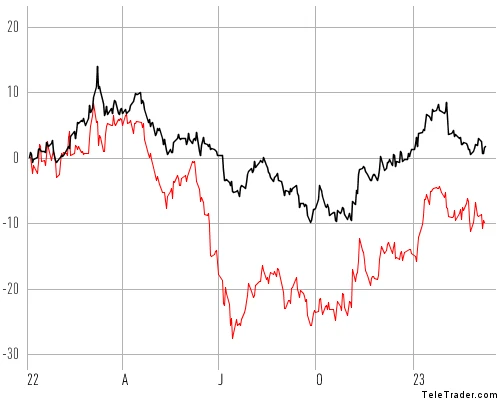 Zwar schneidet Gold seit Anfang des letzten Jahres besser ab als Kupfer und beweist damit, dass es seinem Ruf als sicherer Hafen in Zeiten von Krise und Inflation gerecht geworden ist. Seit Beginn diesen Jahres allerdings gelingt Kupfer (+4,6 Prozent) eine Outperformance gegenüber dem Edelmetall (+0,7 Prozent) und spiegelt damit den zum Jahreswechsel aufgekommenen Konjunkturoptimismus wider.