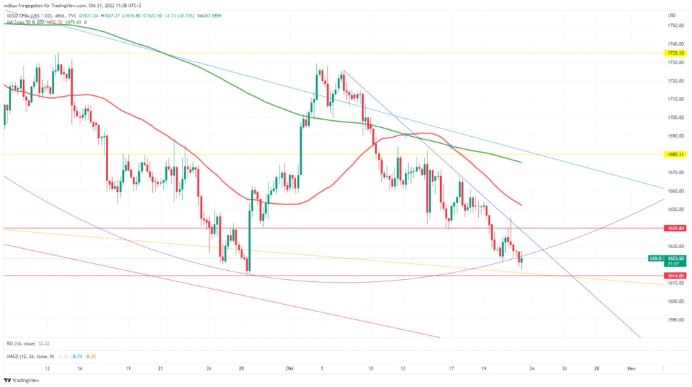 Mit dieser Entwicklung war klar, dass es in Richtung des Jahrestiefs bei 1.614 Dollar geht. Der Markt wird dort versuchen einen Doppelboden zu setzen. Dieser bestätigt sich mit einem Ausbruch über die seit Anfang Oktober intakte Abwärtstrendlinie.