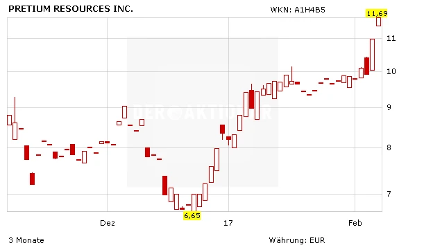 Ende vergangenen Jahres, also vor rund sieben Wochen, habe ich für Pretium entschieden. Einen weitaus spekulativeren Wert. Das Unternehmen ist gerade dabei, in British Columbia/Kanada eine Mine zu bauen. Sie sollte in den kommenden Wochen in Betrieb genommen werden. Brucejack, so heißt die Goldmine, war und ist ein sehr umstrittenes Projekt. Und der eine oder andere Geologe bezweifelt noch heute, dass die Geologie halte, die Goldgrade also durchgängig sein werden. Um es kurz zu machen: Ich gehe dieses Jahr ein höheres Risiko, weil ich glaube, in einer zweiten Aufwärtsbewegung werden vor allem die Juniorproduzenten und die Entwicklungsunternehmen – und auch aussichtsreiche Explorer – zu den großen Siegern gehören. In Euro gerechnet sieht die Bilanz nach 6 Wochen so aus: Die Aktie stand bei der Empfehlung bei 6,93 Euro, der letzte Kurs gestern Abend lag bei 11,53 Euro. Ein Plus also mehr als 66 Prozent binnen 6 Wochen. Und das ist gar nicht so übel, oder? Und um das klar zu machen: Mit einer Marktkapitalisierung von rund 2 Milliarden Euro ist der Wert alles andere als ein Leichtgewicht.