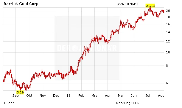 Gold erweist sich für Anleger in diesem Jahr als wahre Goldgrube. Viele Minenaktien haben sich bereits verdoppelt. Doch das Potenzial ist noch gewaltig. Setzen Sie auf die besten Gold- und Silberaktien. Sichern Sie sich noch heute das Vorzugsabo von Goldfolio, dem Börsenbrief zum Thema Gold- und Silberaktien. Erhalten Sie Woche für Woche Depotupdates, ausführliche Besprechungen von Aktien und aussichtsreiche Neuempfehlungen. Mit Goldfolio waren Anleger im laufenden Jahr auf der Überholspur. Worauf warten Sie? Alle Details: www.goldfolio.de