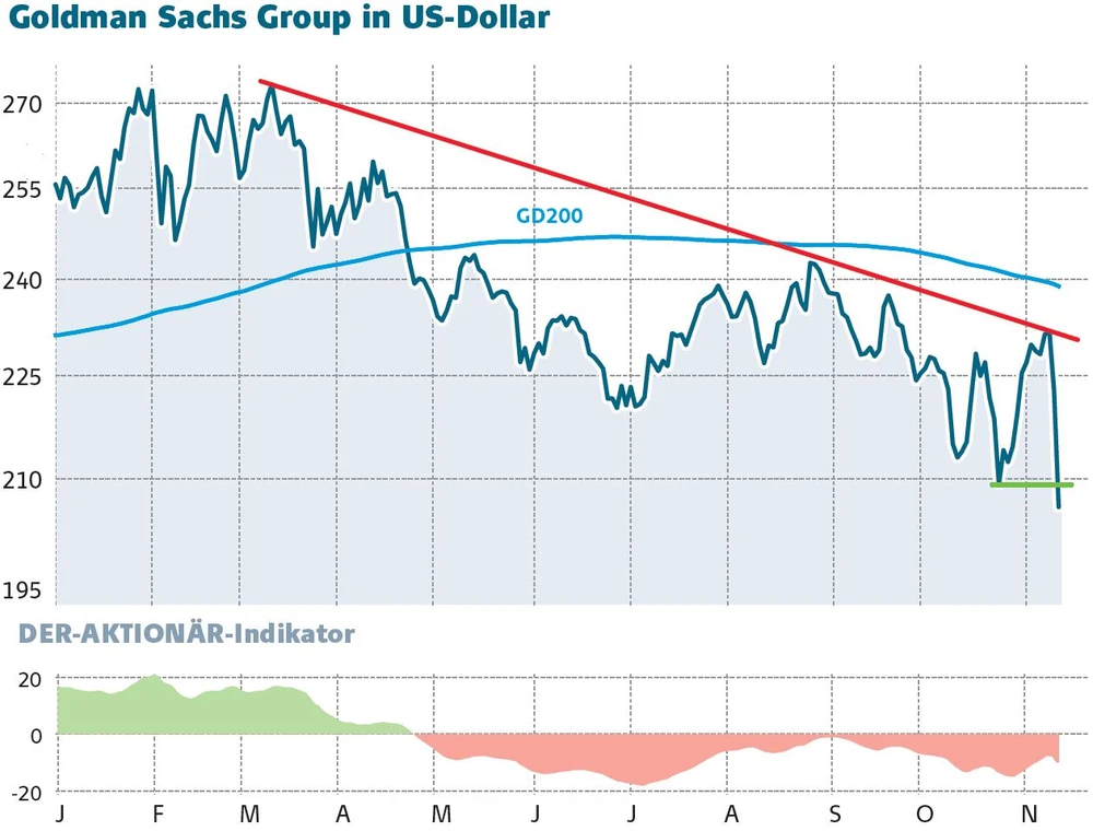 Der Schadenersatz und die möglichen Millionen-Strafen gegen Goldman Sachs könnten sich auf bis zu 2,0 Milliarden Dollar belaufen. Das bleibt an der Börse natürlich nicht ohne Auswirkungen. Die GS-Aktien verloren seit 9. November von 231,69 auf 205,13 Dollar – ein Minus von über elf Prozent. Im deutschen Handel rutschte die Goldman-Aktie im gleichen Zeitraum von 204 Euro auf 183 Euro ab.