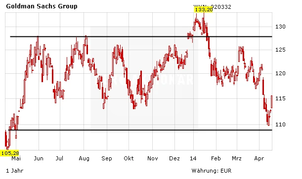 DER AKTIONÄR zieht auf dem amerikanischen Markt die Goldman-Sachs-Aktie den Papieren von Morgan Stanley vor. Nach der langfristigen Seitwärtsbewegung dürften die guten Zahlen dem Kurs neuen Schwung geben, um die 130-Euro-Marke angreifen zu können. Gelingt der Sprung über diese Marke, ist weiteres Potenzial vorhanden.