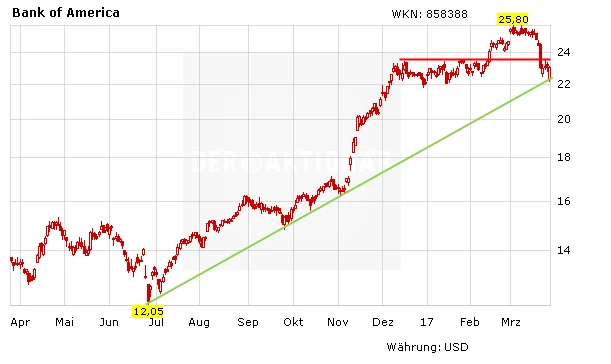 Das andere Thema, das in den letzten Monaten für ordentlich Rückenwind bei den Banken sorgte, war die Aussicht auf weniger Vorschriften für die Branche. Selbst wenn sich die Abschaffung des Regulierungspaketes Dodd-Frank jetzt verzögern sollte: Trump kann viele Gesetze laxer auslegen und dadurch die Banken entlasten. In den kommenden Monaten steht außerdem die Besetzung wichtiger Posten bei mehreren Regulierungsbehörden an. Die Regierung kann die Personalien in ihrem Sinn beeinflussen und auch so für mehr Freiheiten in der Branche sorgen.
