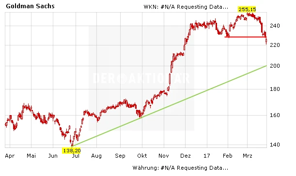 Auch Goldman Sachs ist nach wie vor ein Kauf, denn alleine mit der Neubesetzung verschiedener Aufsichtsposten kann Trump die Regulierung für Banken abschwächen. Als Platzhirsch im Investmentbanking sollte der Konzern davon deutlich profitieren können. Wichtig ist jetzt,die Marke von 228,36 Dollar (209,91 Euro) schnell zurückzuerobern. Hier drehte der Kurs bereits Anfang Februar wieder nach oben. Fundamental ist die Aktie mit einem KGV von 12 billiger als die Peer-Group, die auf 14 kommt. Das Kursziel des AKTIONÄR lautet 290,00 Euro, bei 195,00 Euro sollte ein Stopp platziert werden.