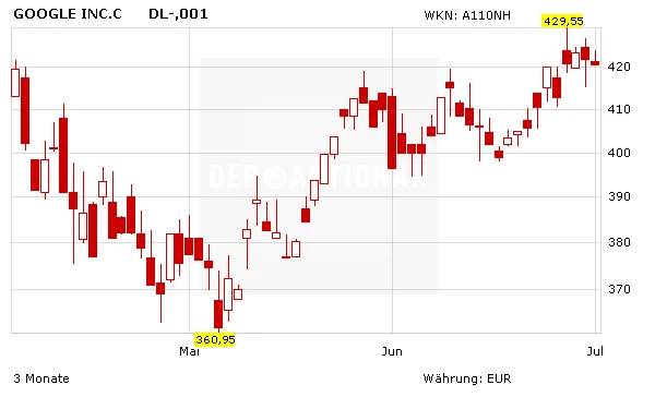 Die Google-Aktie befindet sich seit Wochen in einem starken Aufwärtstrend. Und trotzdem wird das Papier nur mit einem 2015er-KGV von 18 bewertet, das für einen Weltmarktführer dieser Größenordnung noch viel zu günstig ist. Gewinne laufen lassen!