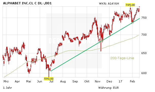 Nicht nur wegen Google Maps bieten sich für das Kerngeschäft Werbung noch langfristige Wachstumschancen. Auch andere Google-Apps wie die Videoplattform YouTube bieten Chancen für eine weitergehende Monetarisierung durch Werbung. Die Alphabet-Aktie führt währenddessen ihren Aufwärtstrend ungebremst fort. Die Zuwächse im neuen Jahr werden im Bereich von 820 Dollar gestützt.